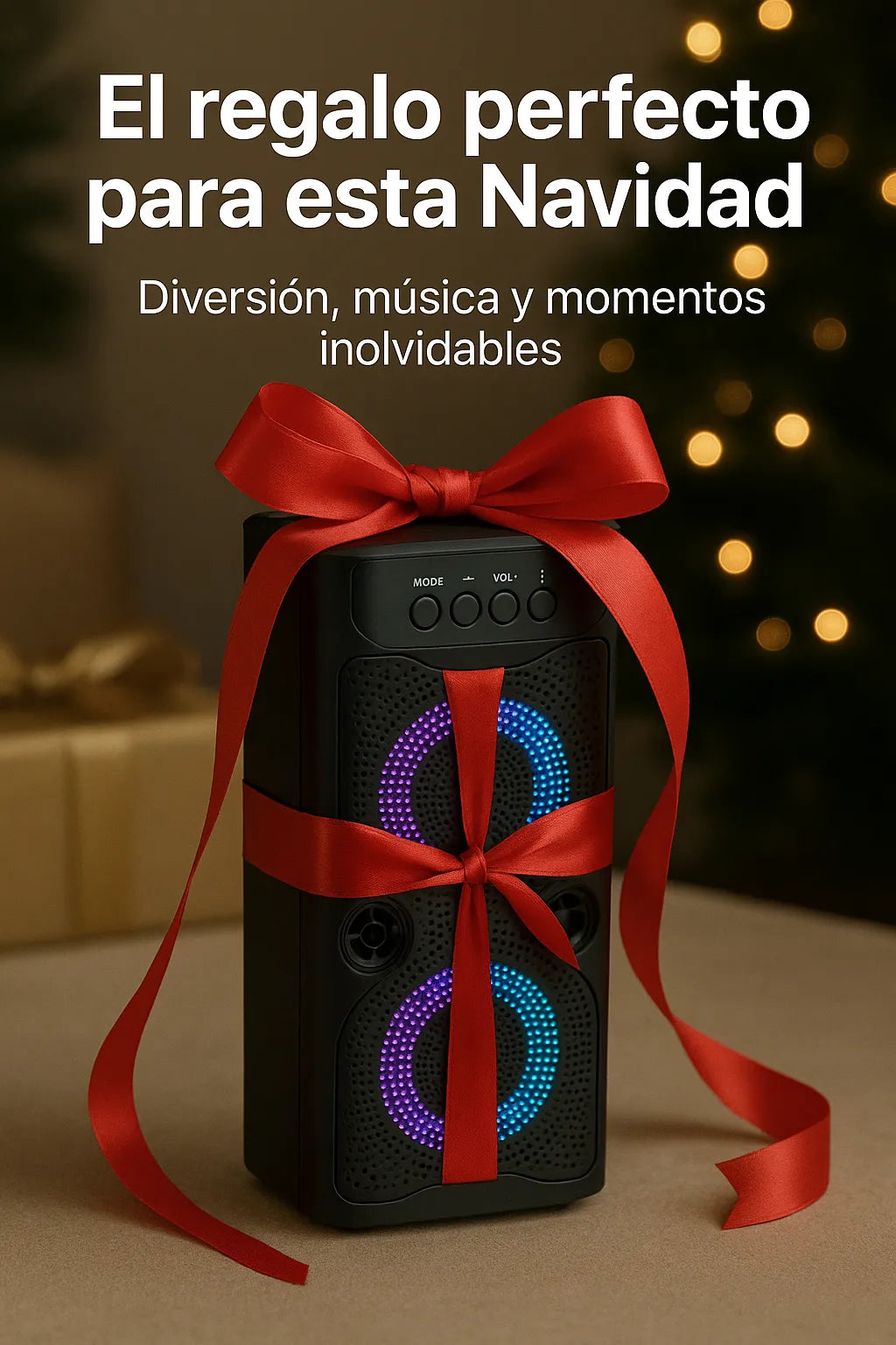 - Luces LED que crean un ambiente festivo y moderno.